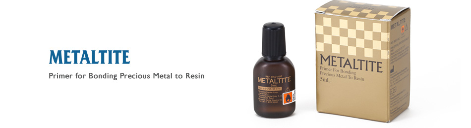 METALTITE® is a primer to improve the adhesion between resins and precious metals such as gold, titanium, semi-precious metals and many other dental alloys. METALTITE® contains MTU-6, a thiouracil monomer, which enhances a tenacious chemical bond between resins and precious metals. Its high bond strength eliminates tin plating of metal surfaces.